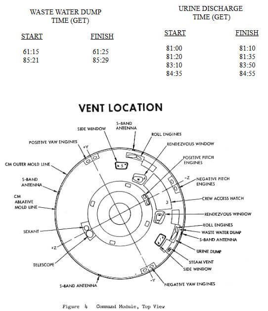 Vodotěsnost nebyla konstrukčním kritériem. Kryt je odhozen spolu se záchrannou věží. Když k tomu dojde ve výšce přibližně 50 námořních mil, lze předpokládat, že jakákoli voda zachycená mezi krytem a pláštěm kosmické lodi nepochybně zmrzne. Malá část tohoto ledu mohla zůstat přichycená ke kosmické lodi a mohla přežít i „barbecue mode“ během translunárního letu. „Barbecue mode“ spočívá v pomalé rotaci kosmické lodi rychlostí přibližně dvou otáček za hodinu za účelem tepelné regulace vnějších povrchů. Tato rotace je periodicky přerušována kvůli korekcím dráhy. Za předpokladu, že led mohl přežít v různých otvorech nebo ve formě tenkých vrstev podél okenních výklenků či jinde, je možné, že v důsledku řízené orientace během televizního přenosu REV 1 mohlo dojít k solárnímu ohřevu. Adler a Salisbury ve svém nedávném článku o chování vody ve vakuu uvádějí, že led se ve vakuu snadno vytváří do značných tlouštěk, které umožňují existenci vody pod jeho povrchem. Dále uvádějí, že když tato voda prorazila povrch (v jejich případě zmrzlou půdu), „prorazila explozivně“.